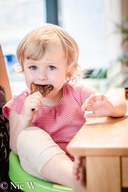 …….. and Astrid showing us just what an awesome vegetarian she is (not!). Chowing down on a chop!