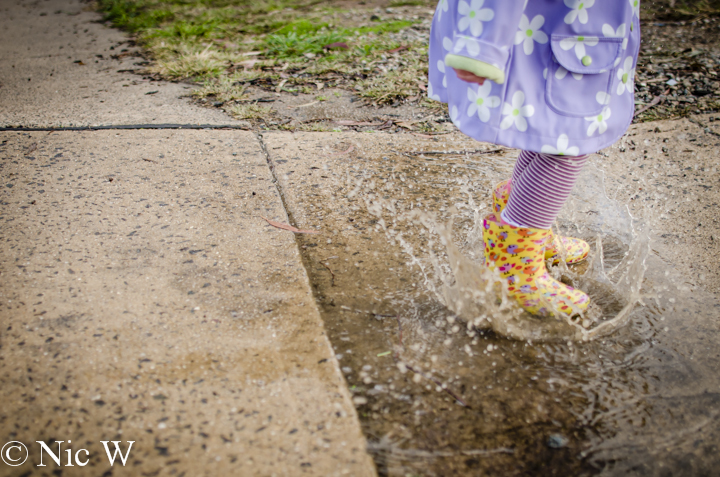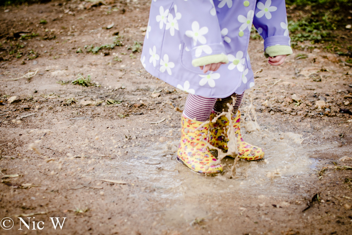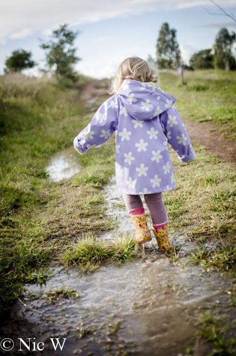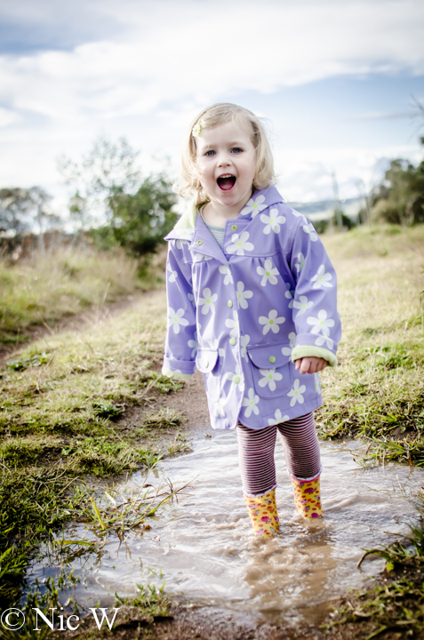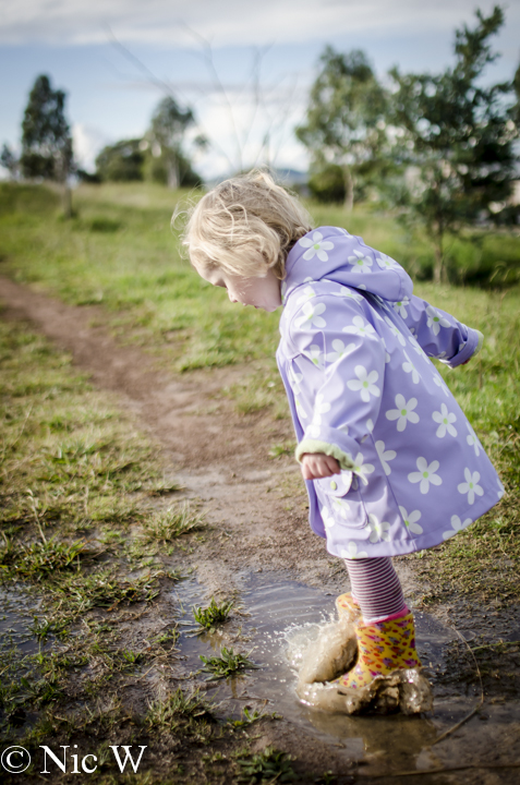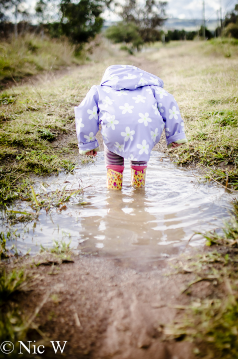 Peppa Pig has a lot to answer for, but I do try to be the fun mum at least some of the time so what is a bit of washing for some toddler fun? After a few rainy days, Astrid and I took the alpacas out for their daily walk, and thought we might try for some puddle jumping fun. Astrid was duly equipped with gumboots and her rain coat and we went off in search of muddy adventures.