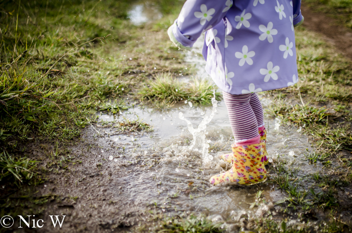 Once we ran out of suitably muddy puddles to jump in, it was time to run, jump and skip in the afternoon sunshine……. until the cold wet feet got the better of her and it was time to go home and warm up!