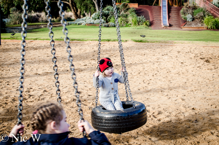 Luckily we were going to be visiting Warrnambool for our Great Ocean Road trip so we made sure to organise a catch-up. Astrid was beside herself with excitement about spending the afternoon playing with Alexander, Bethany and Anneliese. Once we arrived at Tab’s, Astrid got straight into playing with the kids while Soren had a feed. We then decided to make the best of the weather (it was at least momentarily sunny) and head to the playground. Warrnambool has a pretty awesome playground, Lake Pertobe Adventure Playground, which has a range of playground equipment for all different ages, in lots of different zones. It also has paddle boats, trampolines and various other fun activities for kiddies. We only ended up seeing a part of it in our afternoon there but it was certainly a hit with Astrid.