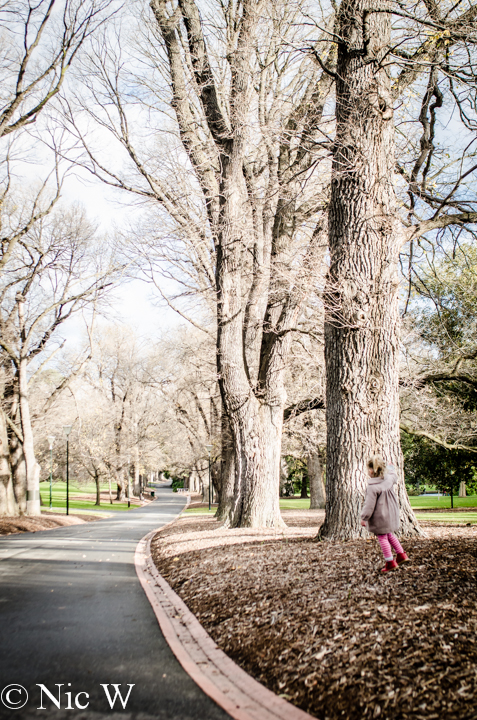 On our last trip to Melbourne we had a failed attempt with the city circle tram due to it being over-run with business traffic, making it useless for sight-seeing. We thought it was worth giving it another go though. It was a couple of kilometres walk from our hotel down to the tram stop but we walked through the Fitzroy Gardens which were lovely in the afternoon sunshine (well the 5 minutes between the wind and rain). We could have spent longer there but Astrid enjoyed her run around.