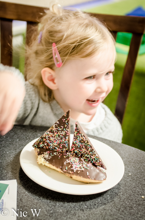 We eventually reached the tram stop and waited for the city circle tram to arrive. Astrid was beside herself with excitement, which didn’t dissipate once on the tram. Luckily it was less busy than the last time we tried this trip. We had a vague plan to head into the city for a wander and some coffee. After a few stops we jumped off the tram and headed out of the wind and into the shops. Astrid complained that her tram ride was ‘too short’ but we placated her by letting her share Anto’s chocolate milkshake. After our afternoon tea we wandered the shops in the warm for a bit and decided to procure some chicken fried rice for kiddy dinner. The adults decided we were too full and could live on cake alone.