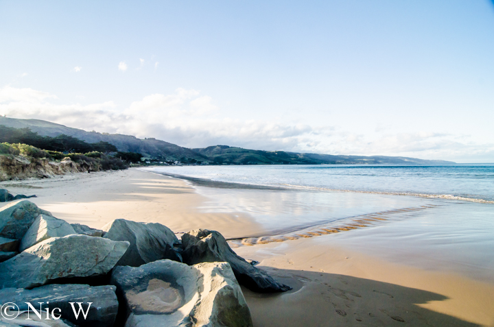 We drove through another few small towns, and admired the farms with spectacular views. Lucky sheep! We reached Apollo Bay after about an hour and reluctantly woke both children. Soren was happy to be released from the car but Astrid was very grumpy. The beach at Apollo Bay is gorgeous and the late afternoon sun was making it look particularly so. We tried to entice Astrid with a walk on the beach, normally a hit……. but the grumpy bear wasn’t liking being woken. At least she got to have her tantrum in a beautiful location.