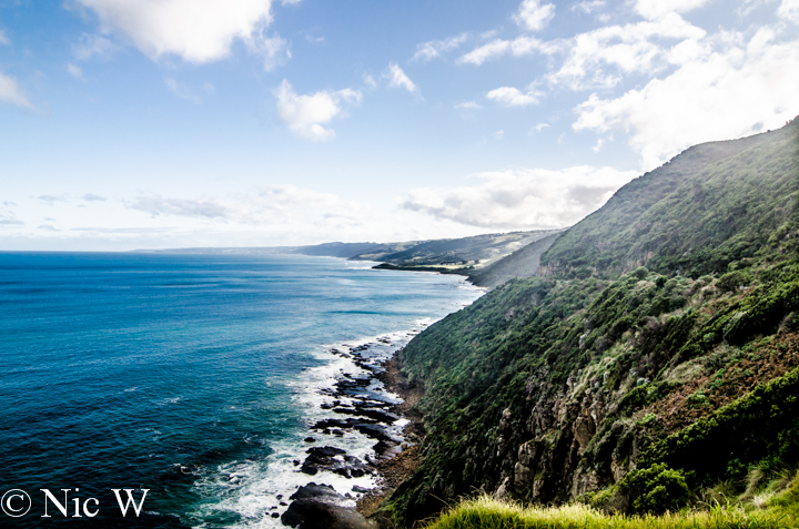 Due to the tropical conditions in our apartment and some luck the carseat had dried ….. and it was still sunny, so we decided to head out for some Great Ocean Road sightseeing. For the second time that day we loaded up the car and headed off. This time Astrid was instructed to warn of impending vomit. Now haven driven this section of road several times, we were worried about how windy it was and another car-sickness episode. Luckily Astrid was asleep about 5 minutes after leaving and missed all the stomach-churning action. Soren lasted a few minutes longer than Astrid, but also eventually succumbed to car napping. The skies weren’t quite as clear as earlier in the day but there were still some nice views to be had.