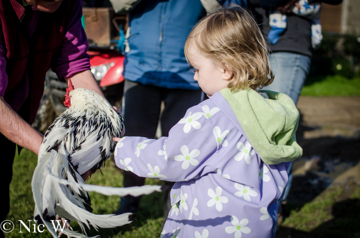 Peter and Jenny took us to their neighbours house to meet their chooks. Very pretty show chooks who were being washed and blow dried for a show. The were indeed attractive chooks! They also had some cute cows……. Astrid was again impressed, until she spied another motorbike!