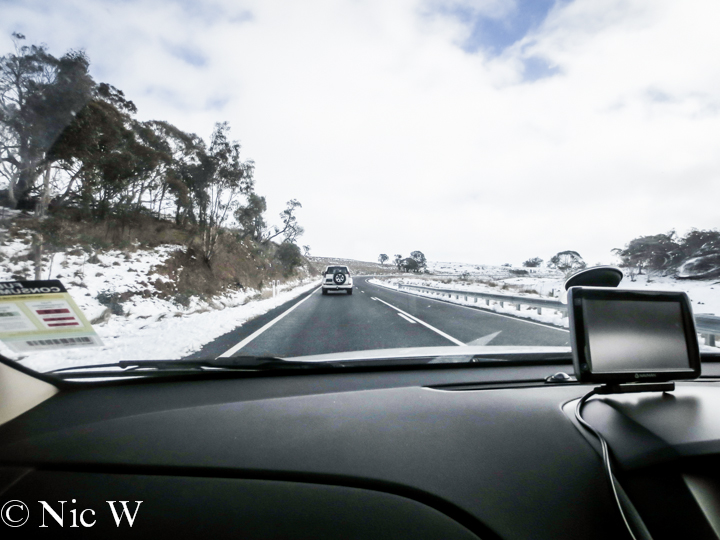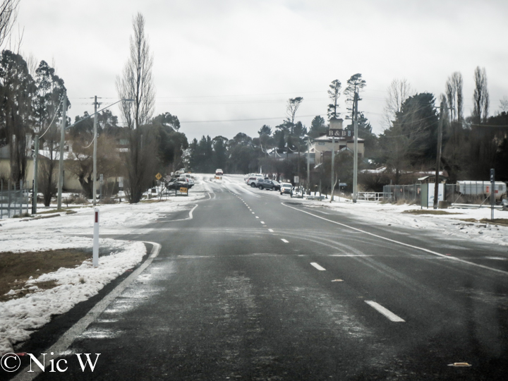 Cars were pulling off the road and kids were playing in paddocks off the highway and snow men were appearing everywhere. It was after 11am and there was quite thick snow everywhere, it must have been more impressive earlier in the day. We seriously debated waking Astrid and letting her play but with another 2.5 hours of driving we weren’t sure that was a good idea. The camera gear was also in the boot, so we had to make do with photos of the snow with a our point and shoot, while driving. The kids always go to sleep at the wrong moment! As we drove through Nimmatabel the snow was piled up in the streets, but Astrid and Soren kept on sleeping. We knew Astrid would not be impressed if she realised what she was missing.