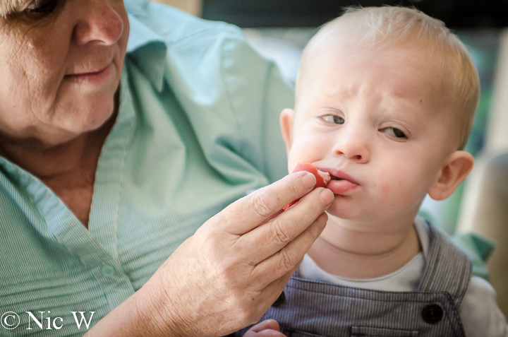 Then it was time to eat the cake…….. Søren has had cake a few times, but never icing. The green buttercream looked like something he would enjoy. About 2 seconds after sitting down on Granny’s lap he dived into that cake and was immediately planting his whole face in it. The cake didn’t last long and it was definitely his favourite part of the day!