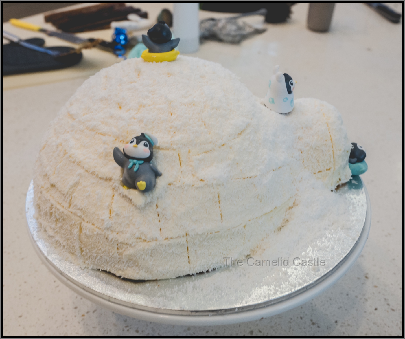 Zinnia decided she wanted a super cute igloo cake with penguins! It had vanilla buttercake in the middle and vanilla icecream and coconut on the outside. We had lots of fun setting the penguins up and it definitely looked like an igloo.