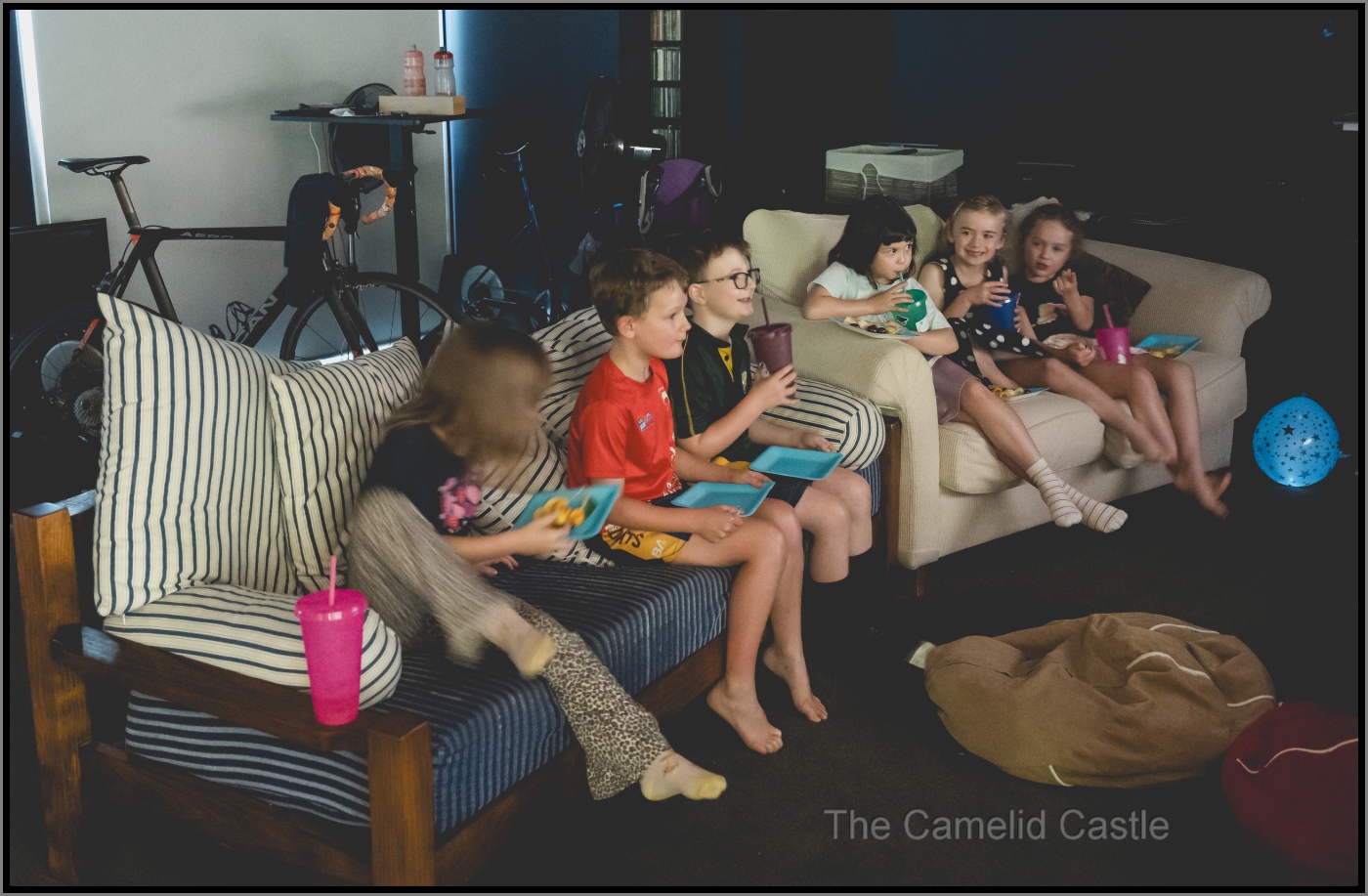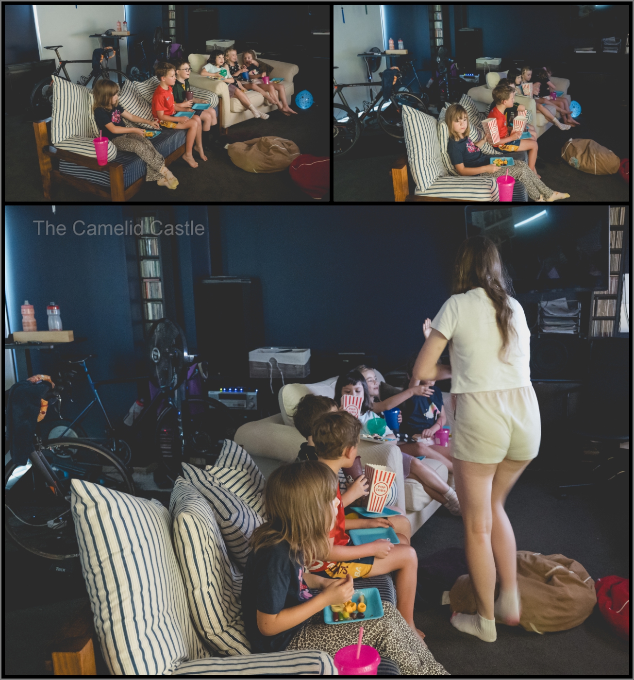 The advantage of a teenage sister is that they can assist with parties…. anything for pocket money it appears! Astrid provided popcorn, drink and snack refills to the excited 7 year olds. Ensuring they had an excellent movie experience.