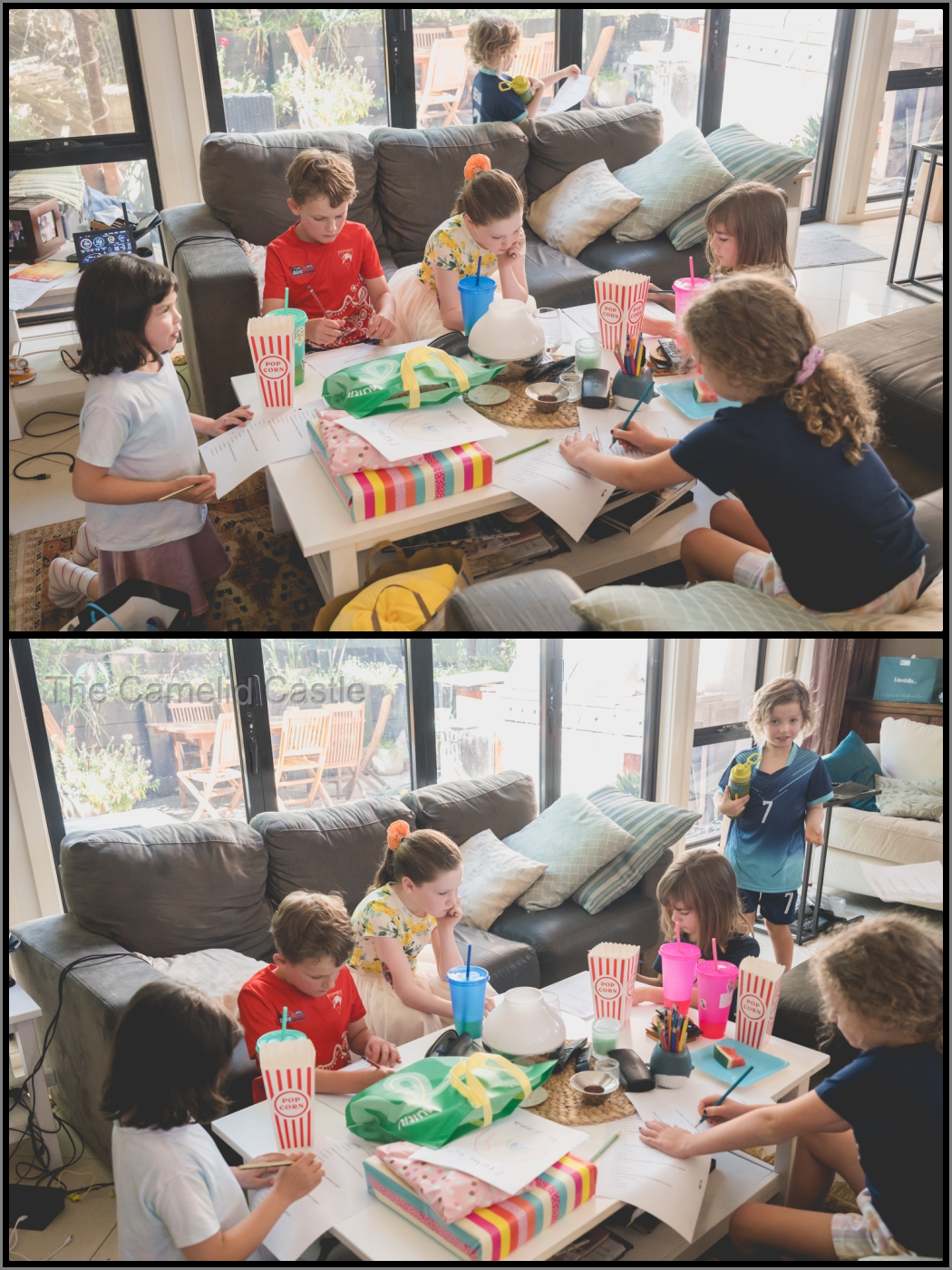 After the intermission for quizzes, cake and presents, the kids wanted to go back to movie watching. Next on the agenda was Despicable Me 4. They didn’t get through it before parents arrived to take kids home but everyone declared they had a great time. It definitely turned out to be one of the easiest parties ever, and all designed by the almost 7 year old!