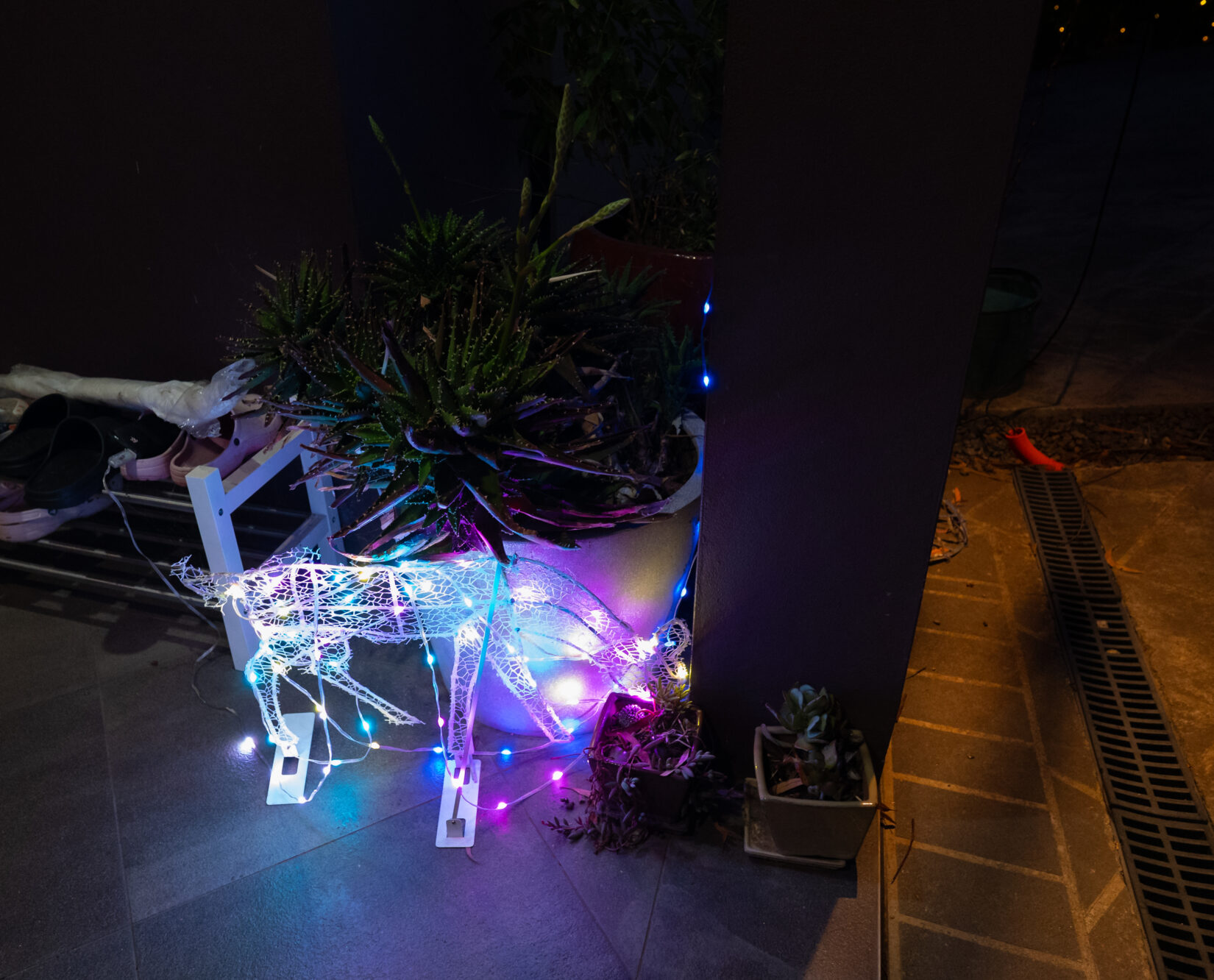 After getting a year off putting up and taking down all those lights, the reindeer were finally let out of the roof, for a good feed! It’s always hot and windy putting them all up, but it does add to the neighbourhood cheer. Soren has been coding his light sequences and will have plenty more done by next year for me to video no doubt!