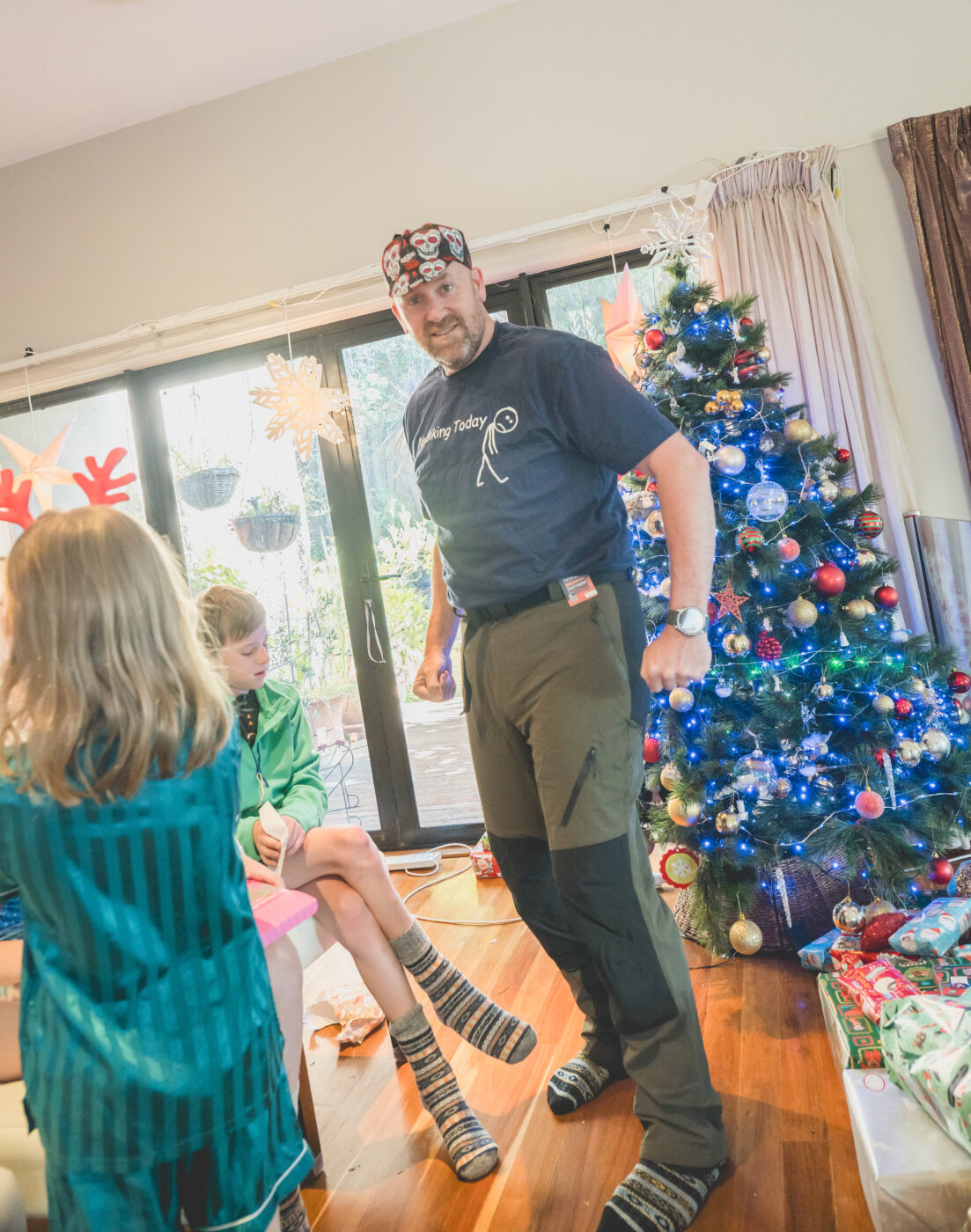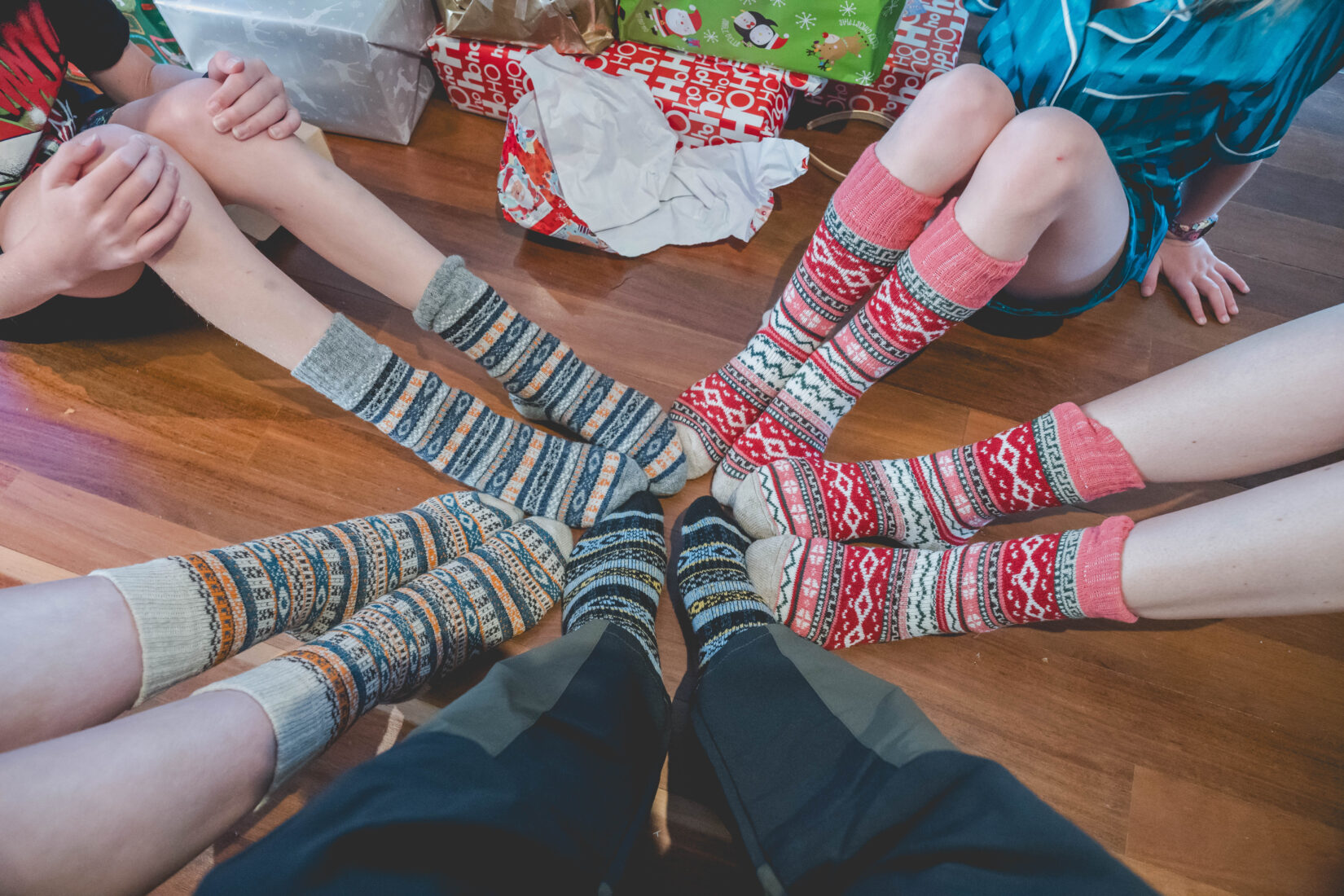 We made a ‘chilled gluhwein punch’ for memories of all those Christmas gluhweins…… and I bought everyone festive Nordic socks so we could think of colder Christmases. It was a bit warm for Christmas jumpers this year but we did put our socks on for a festive photo!