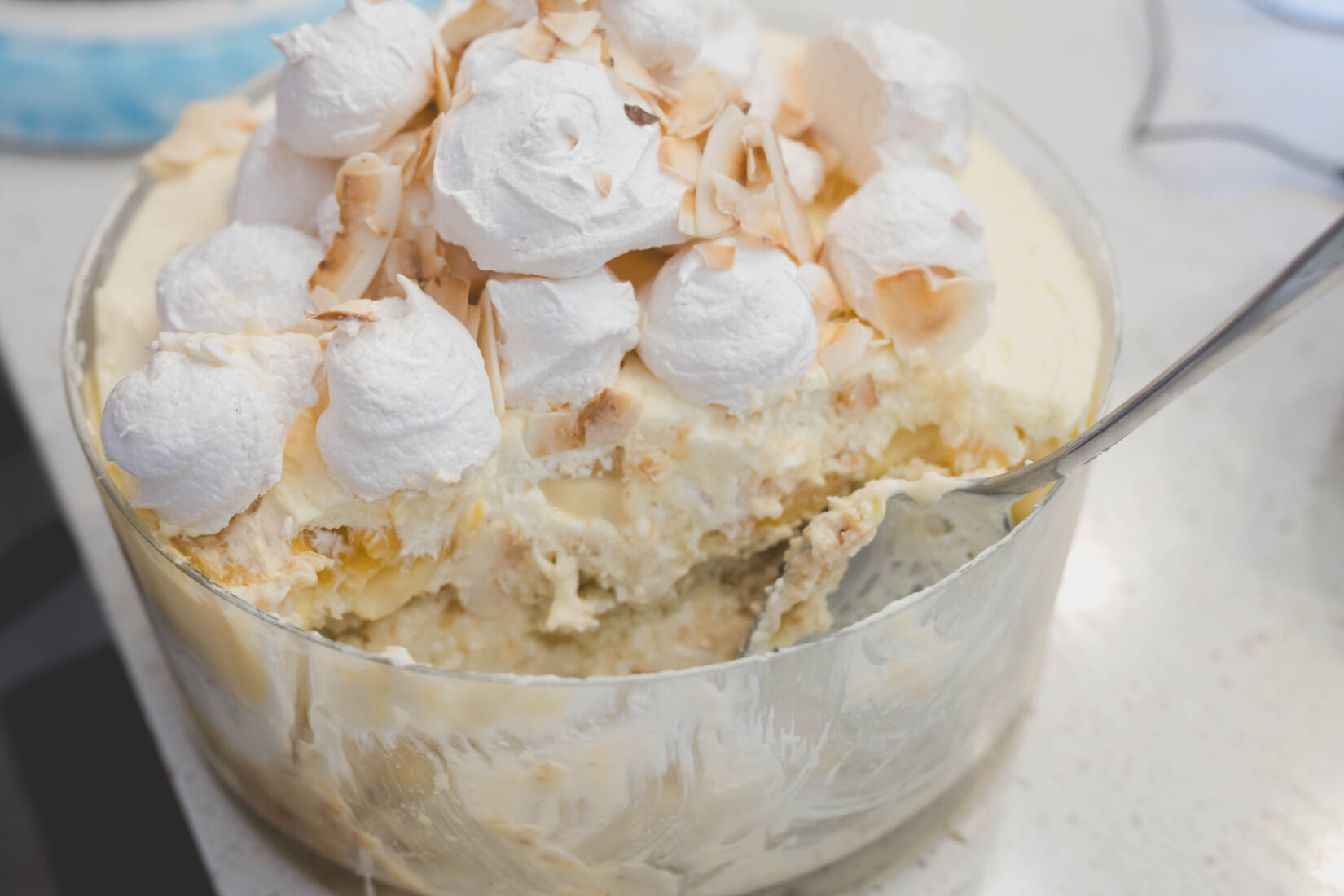 If you had any room after the main course eating fest there was dessert. Figgy pudding that we’d made a few years earlier and had been resting in our freezer pudding collection, home made custard (with brandy for some), mango daiquiri trifle, semifredo with white chocolate, sour cherries and pistachio and some Christmas brownies. Everyone was in a food coma after that!