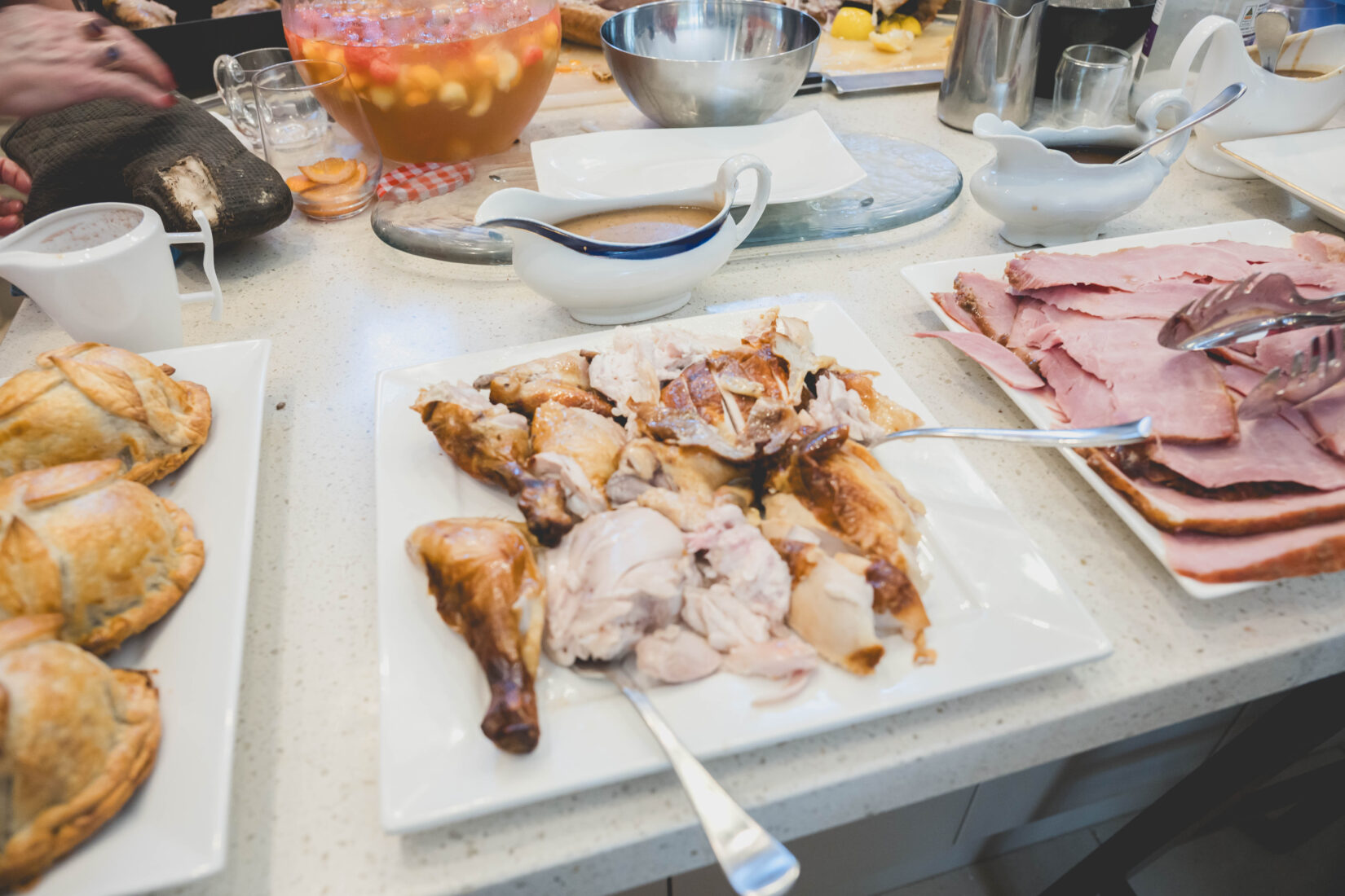 We had a full hot lunch. There were many snacks to start and if you could fit it in turkey, roast chicken, ham, a million different gravies and sauces and array of yummy vegetable dishes. Lorraine had decided us vegetarians had mushroom and brie wellingtons. I made sure mine was not on a different coloured plate 😉