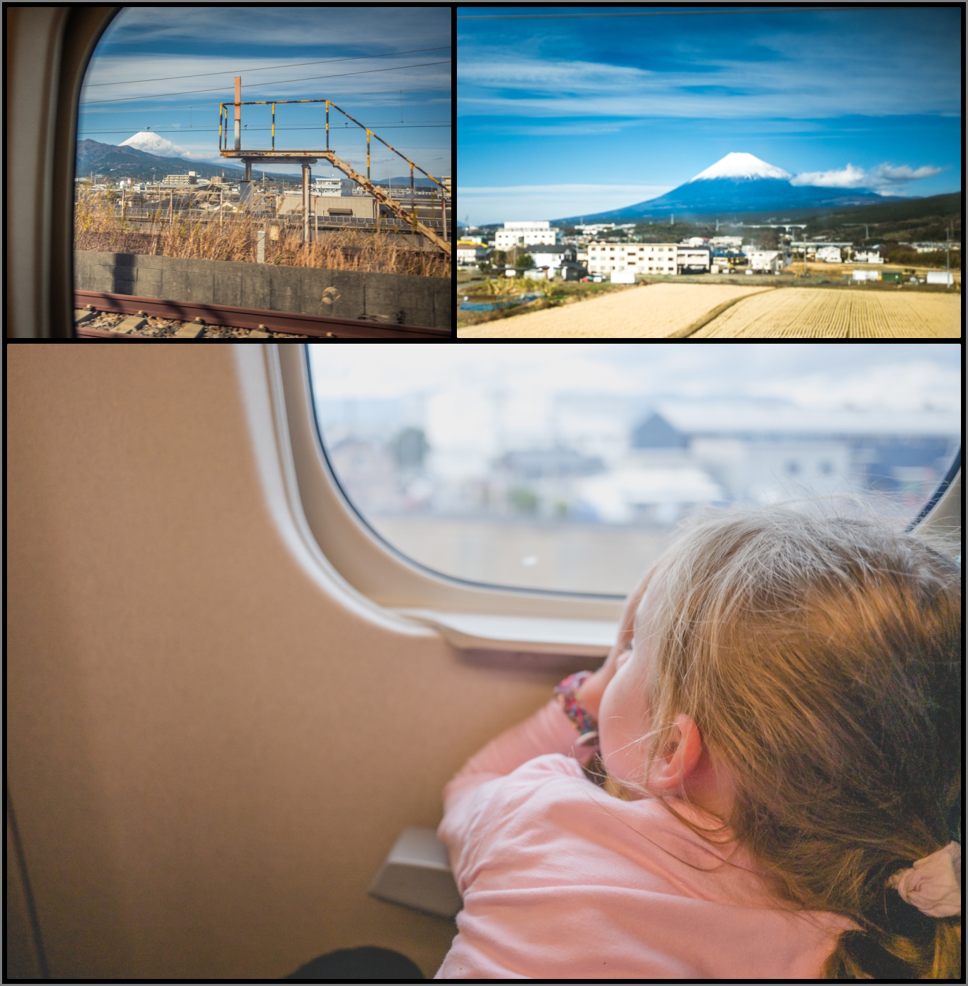 We lucked out with amazing Mt Fuji views as we zipped by at 300km/h. Snow capped and very large it was hard to miss! We’ll be back this way later in the trip and hoped to be lucky enough to catch Fuji views again.