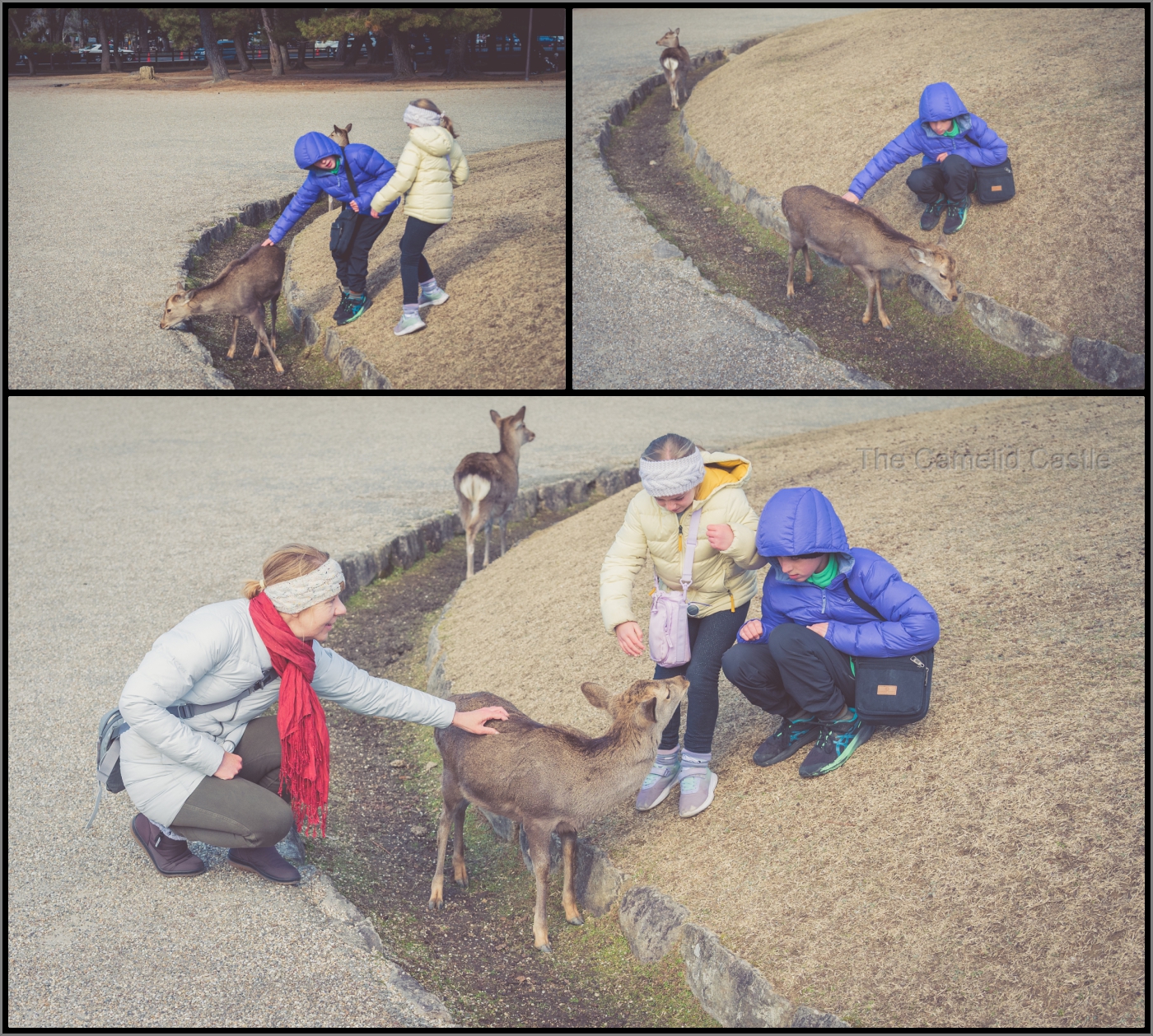 Back to the temple and the kids couldn’t resist a few more deer pats. Everyone was back to being quite fans of the deer now we weren’t being mobbed or having our bottoms bitten!
