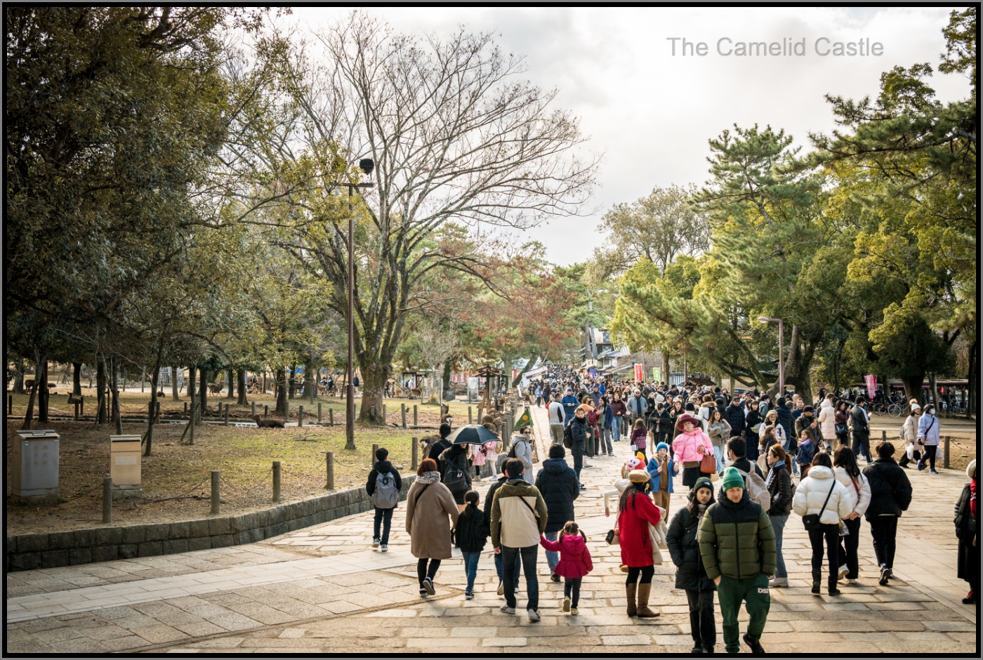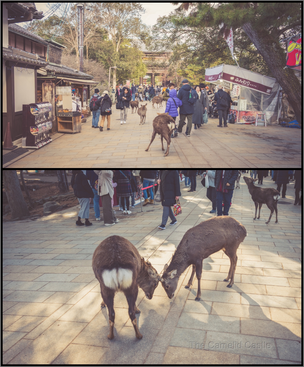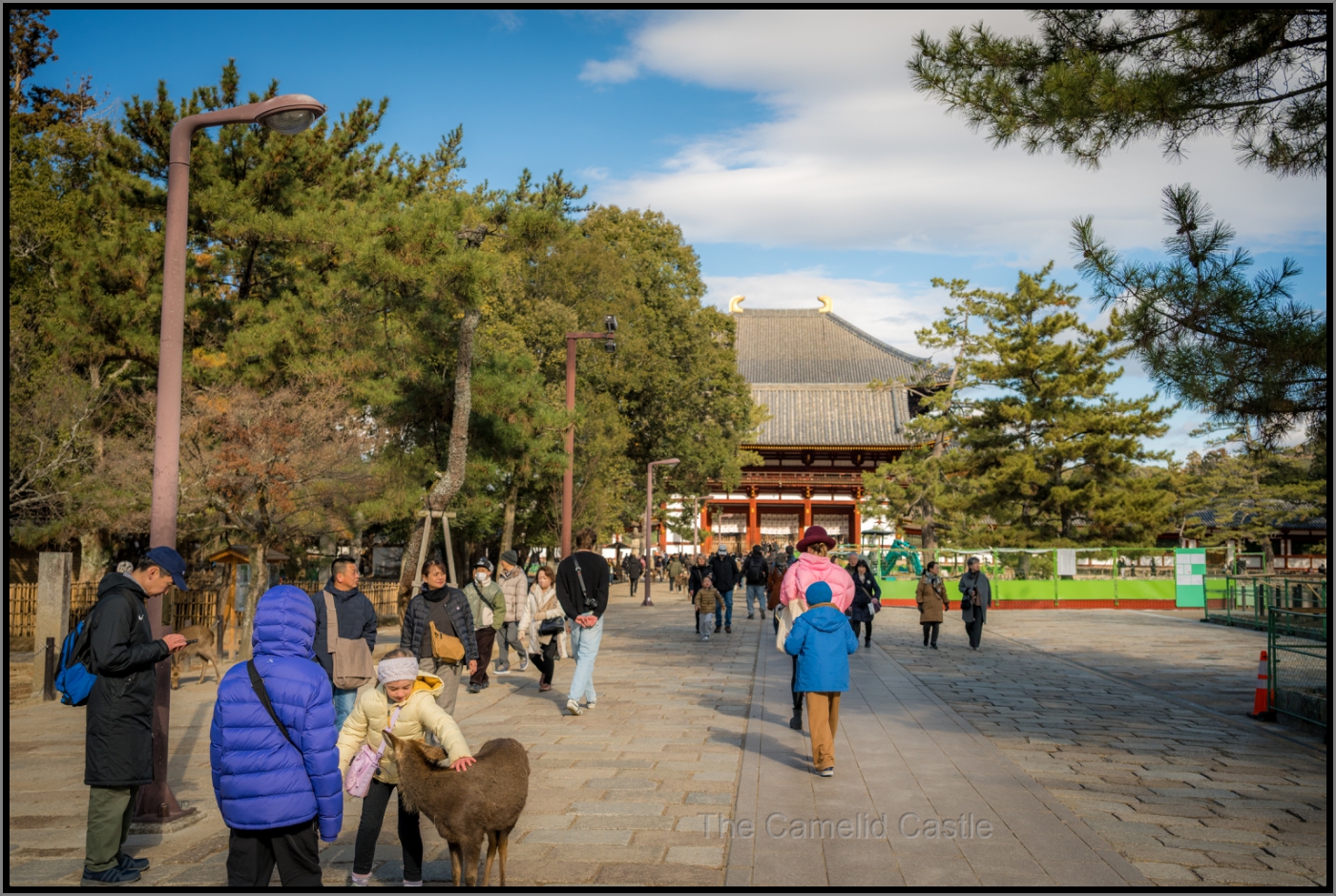 The walk to the Todaiji Temple was absolutely packed with people by this time of the morning, a lot of tourists as well as people out for New Years celebrations. There were also plenty of deer wandering between the street and souvenir stores.