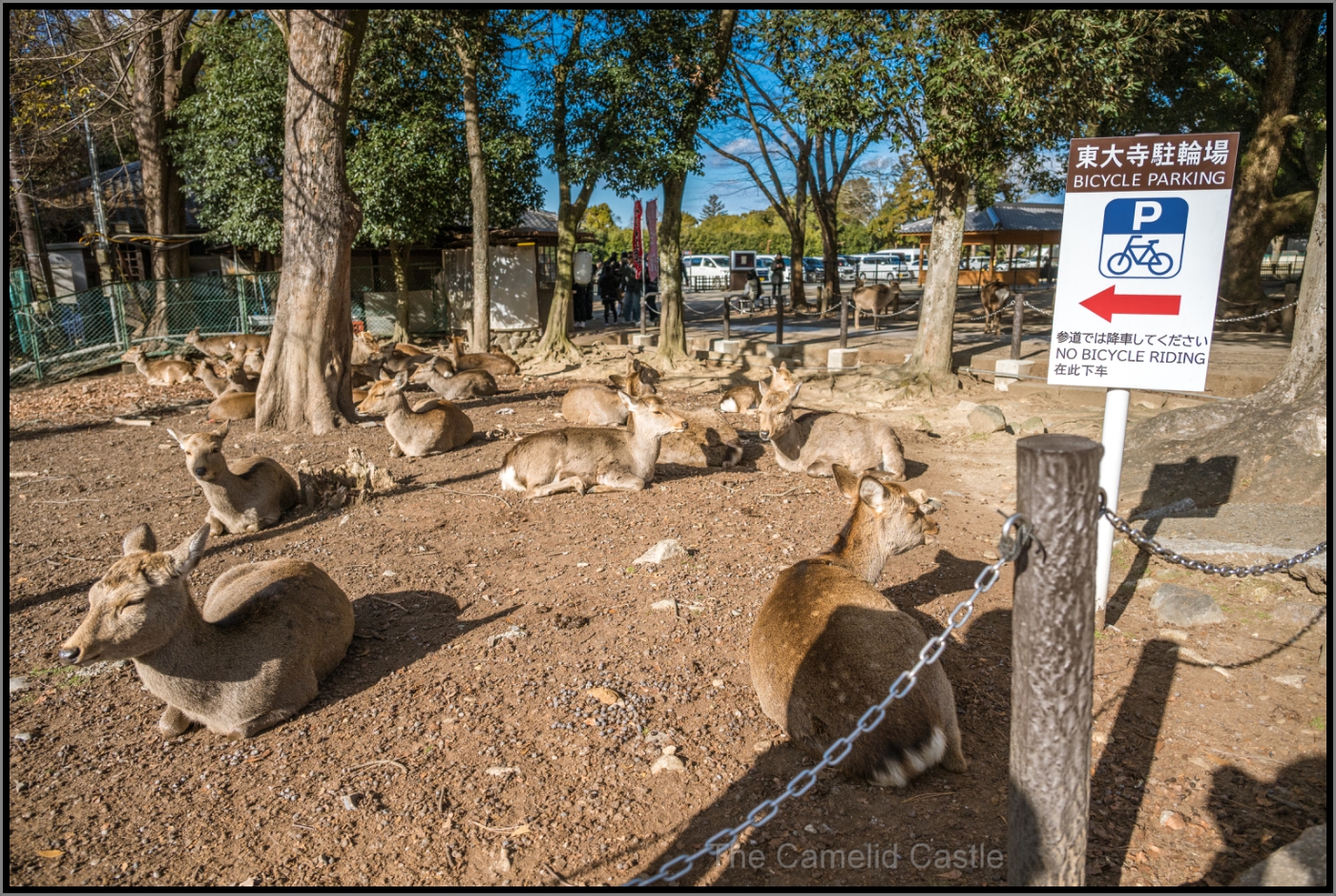 The deer enjoyed the odd fisticuffs together. We also loved the signs for bicycle parking, where the area was full of deer!