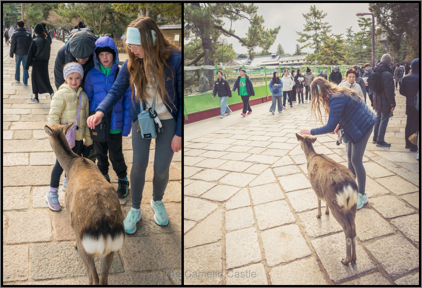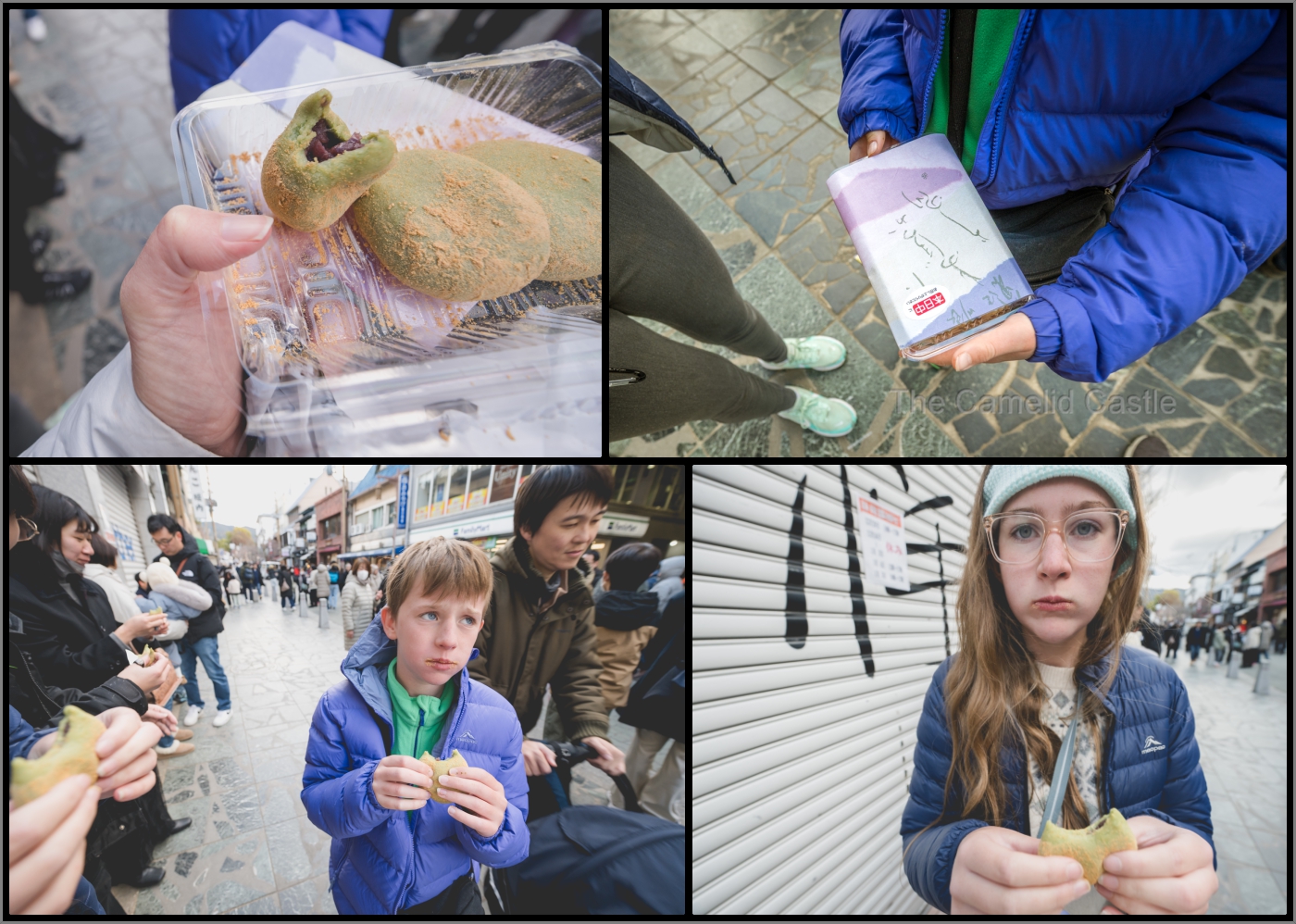 We could already smell some delicious food cooking though, which we’d have to come back to later. The freshly cooking mochi was something the kids decided we’d have to investigate at a later time, as they were on a mission to find the deer.